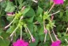 即紫茉莉,英文名:Four-o'clock,Marvel of Peru,为紫茉莉科、紫茉莉属多年生草本植物,一年生栽培。株高50~80cm。根粗壮,茎多分枝而散生。叶对生,卵形或心脏形。花数朵簇生…全部>>