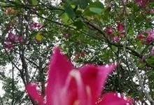 羊蹄甲,别名紫花羊蹄甲、玲甲花,是豆科羊蹄甲属的一种常绿乔木或灌木。树冠开展,枝桠低垂;树皮灰色至暗褐色,近光滑。枝幼时微被灰色短柔毛,后毛脱落;叶硬纸质,近圆形,基部浅心形,…全部>>