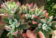 锦晃星是景天科、石莲花属多肉植物。多年生小灌木状多浆植物,灰绿色卵状倒披针形肥厚肉质叶轮状互生,全缘,椭圆尖头,长3-4厘米,宽2-2.5厘米,厚约1厘米,玲凉季节阳光下,叶端及上缘呈红色。…全部>>