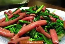 韭菜拌海肠是中国菜系鲁菜菜系中很有特色的菜式之一,韭菜拌海肠以韭菜为主要材料,烹饪以拌菜为主。特色:海肠清脆鲜红,韭菜脆嫩鲜绿,红绿相间,顺色顺味。全部>>