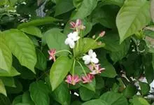 使君子 Jongkind)是使君子科、使君子属攀援灌木,叶对生,椭圆形,两面均被灰白色柔毛。穗状花序,倒挂下垂。花期夏秋。果有五棱,熟时黑色,种子白色。分布于印度、缅甸、菲律宾和中国。喜温润,深根性,…全部>>