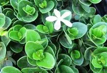 大花假虎刺 A. DC.)是夹竹桃科假虎刺属直立灌木植物;叶革质,广卵形,顶端具急尖而有小尖头,基部浑圆或钝,无毛;聚伞花序顶生,花冠高脚碟状,白色,芳香;花冠裂片长圆形,向左覆盖,…全部>>
