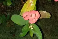 铁海棠为大戟科大戟属蔓生灌木植物;茎多分枝,具纵棱,呈旋转状;叶互生,通常集中于嫩枝上;每个花序基部边缘具微小的红色尖头;苞叶先端圆且具小尖头,无柄,上面鲜红色,下面淡红色;苞片丝状;子房光滑无毛,…全部>>