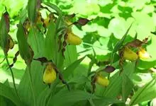 黄花杓兰:植株通常高30-50厘米,具粗短的根状茎。茎直立,密被短柔毛,基部具数枚鞘,鞘上方具3-6枚叶。叶片椭圆形至椭圆状披针形。花序顶生,通常具1花,罕有2花;花黄色,有时有红色晕,…全部>>