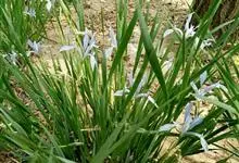 扁竹兰是鸢尾科鸢尾属植物,多年生草本。根状茎横走,直径4-7毫米,黄褐色,节明显,节间较长;须根多分枝,黄褐色或浅黄色。地上茎直立。叶10余枚,密集于茎顶,基部鞘状,互相嵌迭,排列成扇状,叶片宽剑形,…全部>>