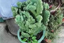 麒麟掌,是大戟科大戟属多年生植物。为金刚纂的带化变异变种。麒麟掌的株乳汁丰富;它的茎圆柱状,上部多分枝,绿色;叶互生,稀少,常生于嫩枝顶端脊上,倒卵形、倒卵状长圆形或匙形,顶端钝圆,具小凸尖,全缘,…全部>>