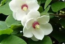 荷花木兰,木兰科北美木兰属常绿灌木或乔木。叶子椭圆形或倒卵形,前端尖,叶面深绿色,边缘没有锯齿,背面分布有稀疏的绒毛;花单生在枝头的前端,很像荷花的形状;花色白色,花丝紫色,…全部>>