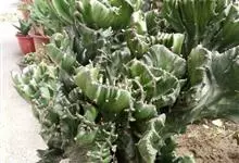麒麟掌,是大戟科大戟属多年生植物。为金刚纂的带化变异变种。麒麟掌的株乳汁丰富;它的茎圆柱状,上部多分枝,绿色;叶互生,稀少,常生于嫩枝顶端脊上,倒卵形、倒卵状长圆形或匙形,顶端钝圆,具小凸尖,全缘,…全部>>