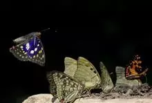 大紫蛱蝶为大型蝶种,翅展约86~110mm。翅紫黑色,有白色斑点点缀其中,雄蝶的翅具强烈紫色虹彩,其余部分暗褐色,后翅臀角具粉色斑。雌蝶体型较大,但是没有蓝紫金属光泽。原产于东亚的蝶类。…全部>>