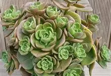 玉蝶 E.Morren)是景天科石莲花属多年生肉质草本植物,植株高可达60厘米。叶片互生,肉质,倒卵匙形,叶稍直立,先端圆且有小尖,微微向内弯曲,叶片淡绿色;单歧聚伞花序腋生,小花为钟形,赭红色,…全部>>