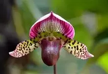 兜兰是兰科兜兰属的多年生草本植物。根茎粗状,直径3~4毫米,有很多须根;叶基生,叶片肉质增厚,排成紧密2列,叶片呈长圆形,表面有极短柔毛;总状花序,粉白色,花葶直立或倾斜,深绿色或褐色,花瓣大,呈唇形,…全部>>