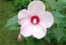 芙蓉葵是锦葵科木槿属植物,又名草芙蓉、大花秋葵,原产于北美。落叶灌木状。叶大、广卵形,叶柄、叶背密生灰色星状毛。花大,单生于叶腋,有白、粉、红、紫等色。喜阳、略耐阴,宜温暖湿润气候,忌干旱,耐水湿,…全部>>