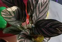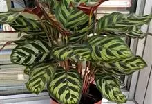 孔雀竹芋:竹芋科,肖竹芋属多年生常绿草本植物。植株挺拔株高可达60厘米。叶柄紫红色, 叶片薄革质,卵状椭圆形,叶面上有墨绿与白色或淡黄相间的羽状斑纹,就像孔雀尾羽毛上的图案,因而得名。…全部>>