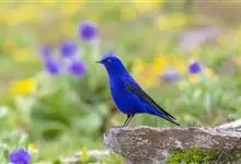 蓝大翅鸲是鹟科、大翅鸲属小型鸟类,体长19-21厘米。两翅尖长。雄鸟通体鲜紫蓝色具金属光泽。两翅和尾黑色。雌鸟上体灰褐色,头、颈、翕具棕白色纵纹,翅上有白色翅斑。虹膜暗褐色,嘴、脚黑色。…全部>>