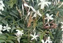 素馨花,木犀科素馨属多年生的攀援灌木植物。攀援灌木,小枝圆柱形,具棱或沟;叶对生,叶轴常具窄翼,小叶片卵形或长卵形;聚伞花序顶生或腋生,花序梗长,苞片线形,花萼无毛,裂片锥状线形,花冠白色,…全部>>