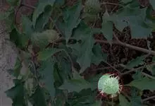 曼陀罗,茄科曼陀罗属一年生大型草本植物,全株光滑。有臭气;叶呈广卯形,边缘具不规则波状浅齿裂;花单生于枝杖间或叶腋,直立,有短梗;花萼是筒状裂片三角形,颜色为白色或淡紫色;果实为蒴果卵状,…全部>>