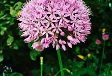 大花葱是石蒜科葱属多年生常绿草本。株高30-60厘米;有鳞茎,呈圆形;叶呈宽线形至披针形,绿色;花葶高大,高约1米,呈伞形花序球状,有数百朵小花,紫红色;种子呈球形,黑色;花期5-6月。…全部>>
