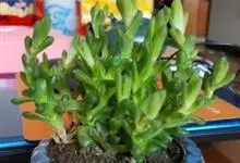 筒叶花月,是景天科青锁龙属的多年生草本植物。植株多分株,灌木状,茎较粗壮,圆柱形,表皮灰褐色;叶片肉质,互生,呈圆筒状,簇生于茎或分枝顶端,叶端呈斜截形,截面为椭圆形;花呈星状,淡白色;花期秋季。…全部>>