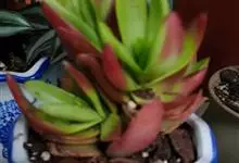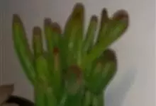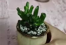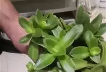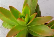筒叶花月,是景天科青锁龙属的多年生草本植物。植株多分株,灌木状,茎较粗壮,圆柱形,表皮灰褐色;叶片肉质,互生,呈圆筒状,簇生于茎或分枝顶端,叶端呈斜截形,截面为椭圆形;花呈星状,淡白色;花期秋季。…全部>>