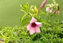 紫蝉花是夹竹桃科黄蝉属植物;其常绿蔓性灌木;叶片轮生,长椭圆形或倒卵状披针形;花腋生,漏斗形,呈暗桃红色或淡紫红色;花期为春夏季。紫蝉花原产于巴西,在中国云南、海南和广东栽培较多;喜高温,不耐寒,…全部>>