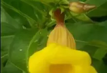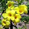 大花软枝黄蝉是软枝黄蝉的一个变种,夹竹桃科黄蝉属植物。藤状灌木,长达4米,枝条软弯垂,具白色乳汁。叶纸质,椭圆形、卵圆形或倒卵形,花序着花4-5朵,花冠比原变种大形,橙黄色,花冠喉部具5个发亮的斑点…全部>>