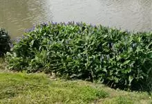 梭鱼草是雨久花科,梭鱼草属多年生挺水或湿生草本植物,株高可达150厘米,地茎叶丛生,圆筒形叶柄呈绿色,叶片较大,深绿色,表面光滑,叶形多变,但多为倒卵状披针形。花葶直立,通常高出叶面,穗状花序顶生,…全部>>
