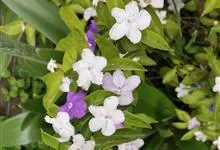 鸳鸯茉莉,茄科鸳鸯茉莉属常绿灌木植物,高1米。茎皮深褐色;分枝力强;单叶互生纸质;花簇生,聚伞花序,花冠五裂花瓣锯齿,含苞时蘑菇状深紫色,花香浓郁;花期4-10月。鸳鸯茉莉花朵芳香,…全部>>