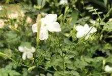 素馨花,木犀科素馨属多年生的攀援灌木植物。攀援灌木,小枝圆柱形,具棱或沟;叶对生,叶轴常具窄翼,小叶片卵形或长卵形;聚伞花序顶生或腋生,花序梗长,苞片线形,花萼无毛,裂片锥状线形,花冠白色,…全部>>