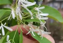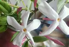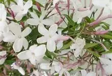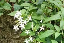 素馨花,木犀科素馨属多年生的攀援灌木植物。攀援灌木,小枝圆柱形,具棱或沟;叶对生,叶轴常具窄翼,小叶片卵形或长卵形;聚伞花序顶生或腋生,花序梗长,苞片线形,花萼无毛,裂片锥状线形,花冠白色,…全部>>