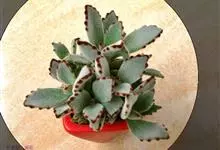 褐斑伽蓝是景天科伽蓝菜属的多年生多肉类植物,茎直立,多分枝,叶生于枝上,肉质叶片匙形,上面密被白色绒毛,下部全缘,叶缘上部有缺刻,缺刻处有深褐或棕色斑块。褐斑伽蓝原产非洲的马达加斯加岛。…全部>>