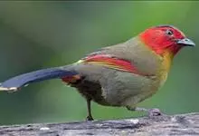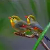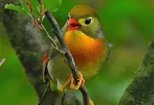 银耳相思鸟小型鸟类,体长14~18厘米。头顶黑色,耳羽银灰色,前额橙黄色;外侧飞羽橙黄色,基部朱红色,极为鲜艳、醒目。尾圆形,尾上、尾下覆羽朱红色,尾暗灰褐色,外侧尾羽橙黄色,其余上体橄榄绿或橄榄黄色。…全部>>
