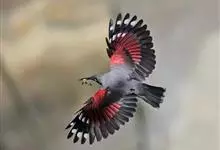 红翅旋壁雀:体重15-23克,体长120-178毫米。是一种体型略小的鸟类。尾短而嘴长,翼具醒目的绯红色斑纹。飞羽黑色,外侧尾羽羽端白色显著,初级飞羽两排白色点斑飞行时成带状。繁殖期雄鸟脸及喉黑色,…全部>>