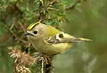 戴菊小型鸟类,体长9~10厘米。上体橄榄绿色。头顶中央柠檬黄色或橙黄色羽冠,两侧有明显的黑色侧冠纹,眼周灰白色。腰和尾上覆羽黄绿色,两翅和尾黑褐色,尾外翈羽缘橄榄黄绿色,初级和次级飞羽羽缘淡黄绿色,…全部>>