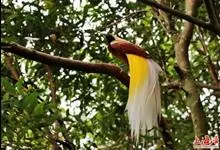大极乐鸟是极乐鸟属中最大的鸟种。成年雄鸟体长可达到43厘米,雌性可达35厘米。雄鸟的额、颊、喉等墨绿色;头、颈黄色;上体暗赤栗色;腹部葡萄红色,胁部有长饰羽,其基部橙黄,中部黄色,…全部>>