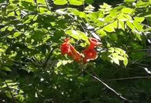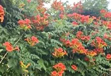 凌霄 Schum.),别名上树龙、五爪龙、九龙下海等,为紫葳科凌霄属的攀援藤本植物。其茎木质,以气生根攀附于它物之上。叶对生,为奇数羽状复叶;小叶卵形至卵状披针形,边缘有粗锯齿;顶生疏散的短圆锥花序,…全部>>