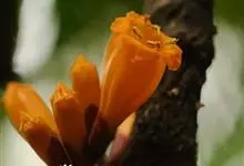 火烧花 Kurz)是紫葳科火烧花属常绿乔木;树皮光滑;叶为奇数羽状复叶对生,小叶卵形或卵状披针形,先端长渐尖,两面无毛;花短总状花序具,着生于老茎或侧生短枝,花序梗长;花萼佛焰苞状,一边开裂,…全部>>