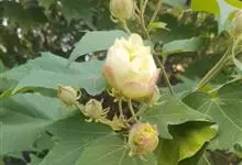 海滨木槿是锦葵科木槿属植物,落叶小乔木,株高3-5米,胸径20厘米,扁球形树冠,枝叶繁盛。厚纸质单叶互生,扁圆形、倒卵形或宽倒卵形,先端钝近平,具短突尖,基部圆形或浅心形,叶缘中上部具细圆齿,…全部>>