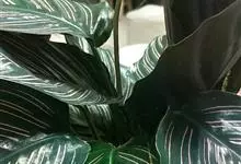 孔雀竹芋:竹芋科,肖竹芋属多年生常绿草本植物。植株挺拔株高可达60厘米。叶柄紫红色, 叶片薄革质,卵状椭圆形,叶面上有墨绿与白色或淡黄相间的羽状斑纹,就像孔雀尾羽毛上的图案,因而得名。…全部>>