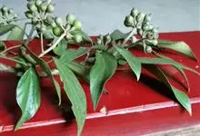 常春藤 Rehd),五加科常春藤属植物中华常春藤的茎叶。叶片革质,通常为三角状卵形或三角状长圆形,叶柄细长,有鳞片,无托叶,花淡黄白色或淡绿白色,芳香,花瓣三角状卵形,外面有鳞片;果实球形,…全部>>