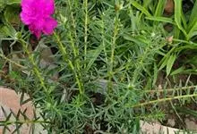 大花马齿苋:一年生草本,高10-30厘米。茎平卧或斜升,紫红色,多分枝,节上丛生毛。叶密集枝端,较下的叶不规则互生,叶片细圆柱形,无毛。花单生或数朵簇生枝端,直径2.5-4厘米,…全部>>