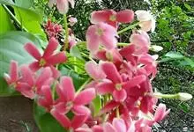 使君子 Jongkind)是使君子科、使君子属攀援灌木,叶对生,椭圆形,两面均被灰白色柔毛。穗状花序,倒挂下垂。花期夏秋。果有五棱,熟时黑色,种子白色。分布于印度、缅甸、菲律宾和中国。喜温润,深根性,…全部>>