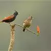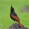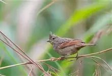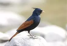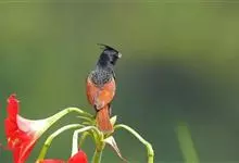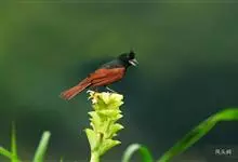 凤头鹀:属小型鸣禽,体重21-31克,体长134-175毫米。以头顶的细长羽冠为特征,雄鸟全身几乎均为黑色具蓝色光泽,两翅和尾以及尾上覆羽栗红色。雌鸟具短的褐色羽冠,上体暗橄榄褐色,…全部>>