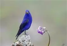 蓝大翅鸲是鹟科、大翅鸲属小型鸟类,体长19-21厘米。两翅尖长。雄鸟通体鲜紫蓝色具金属光泽。两翅和尾黑色。雌鸟上体灰褐色,头、颈、翕具棕白色纵纹,翅上有白色翅斑。虹膜暗褐色,嘴、脚黑色。…全部>>