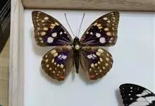 大紫蛱蝶为大型蝶种,翅展约86~110mm。翅紫黑色,有白色斑点点缀其中,雄蝶的翅具强烈紫色虹彩,其余部分暗褐色,后翅臀角具粉色斑。雌蝶体型较大,但是没有蓝紫金属光泽。原产于东亚的蝶类。…全部>>