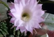 仙人球花 仙人掌科,仙人球属。植株单生或成丛。幼株球形,老株长成圆筒状,高可达75厘米,直径12-15厘米。球体暗绿色,具棱11-12。刺锥状,黑色,长1-1.5厘米。花着生于球体侧方,大型嗽喇叭状…全部>>