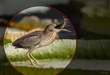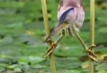 紫背苇鳽是鹭科、苇鳽属动物,为涉禽,体长约33厘米。头顶黑色,后头至尾上覆羽暗栗褐色;翅上覆羽橄榄黄色;下体浅棕黄色。多生活于水库和山脚边的稻田、芦苇丛、滩涂及沼泽草地,在西藏见于海拔2300米的农田,…全部>>