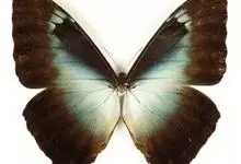 天堂凤蝶翅展可达105mm。前、后翅自基角至后缘约1/2~2/3端为纯净的宝蓝色,后角至后缘1/3~1/2端为黑色,后翅有黑色的尾突。翅背面为棕褐色。全部>>