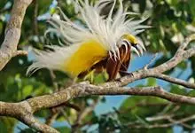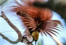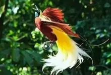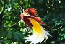大极乐鸟是极乐鸟属中最大的鸟种。成年雄鸟体长可达到43厘米,雌性可达35厘米。雄鸟的额、颊、喉等墨绿色;头、颈黄色;上体暗赤栗色;腹部葡萄红色,胁部有长饰羽,其基部橙黄,中部黄色,…全部>>