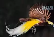 大极乐鸟是极乐鸟属中最大的鸟种。成年雄鸟体长可达到43厘米,雌性可达35厘米。雄鸟的额、颊、喉等墨绿色;头、颈黄色;上体暗赤栗色;腹部葡萄红色,胁部有长饰羽,其基部橙黄,中部黄色,…全部>>