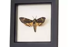 鬼脸天蛾,是鳞翅目天蛾科面形天蛾属动物。成虫翅展100~125毫米,体黑褐色;胸背有骷髅形斑纹;卵圆球形,直径约2毫米,淡黄绿色,表面光滑;老熟幼虫体长70~90毫米,蛹体长约56毫米;前翅为褐色,…全部>>